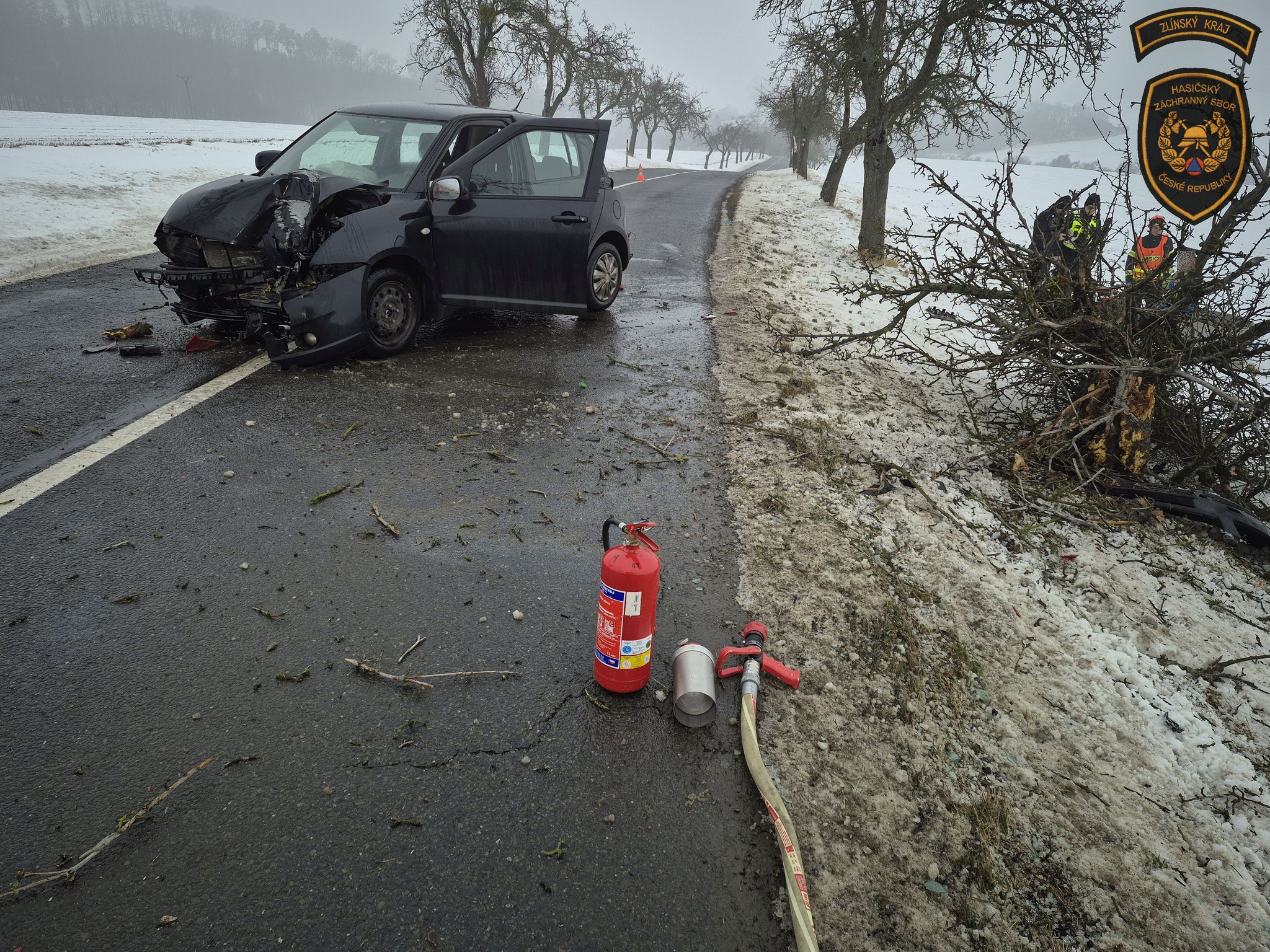 Dopravní nehoda na Kroměřížsku: Řidič sjel ze silnice a naboural do stromu, ten se silným nárazem zlomil