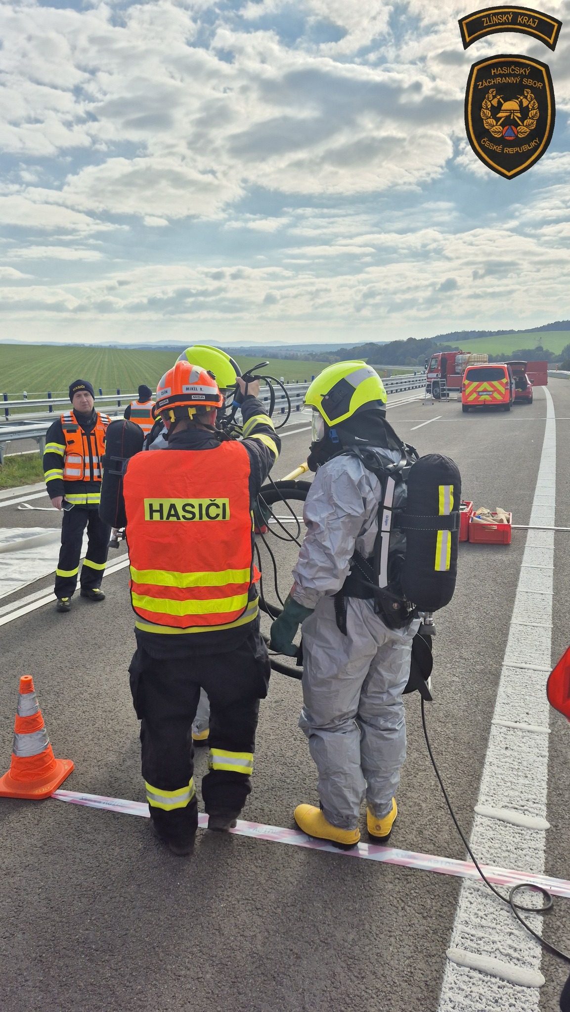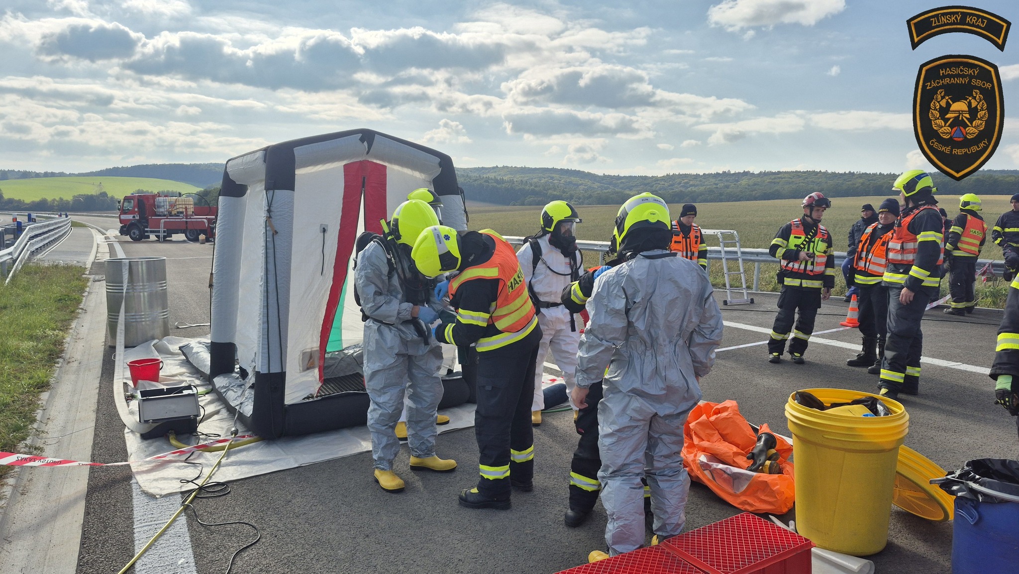 Dálnice D49 u Fryštáku posloužila jako místo nácviku mimořádné události