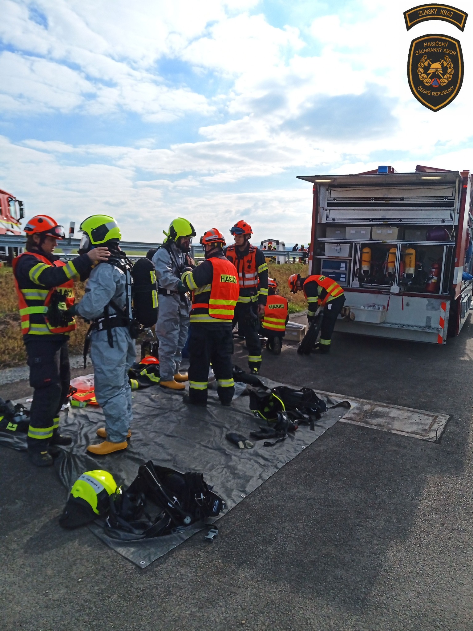 Cvičení se zúčastnili profesionální hasiči ze stanic Holešov, Kroměříž a Zlín, dálniční policie a posádky zdravotnické záchranné služby.