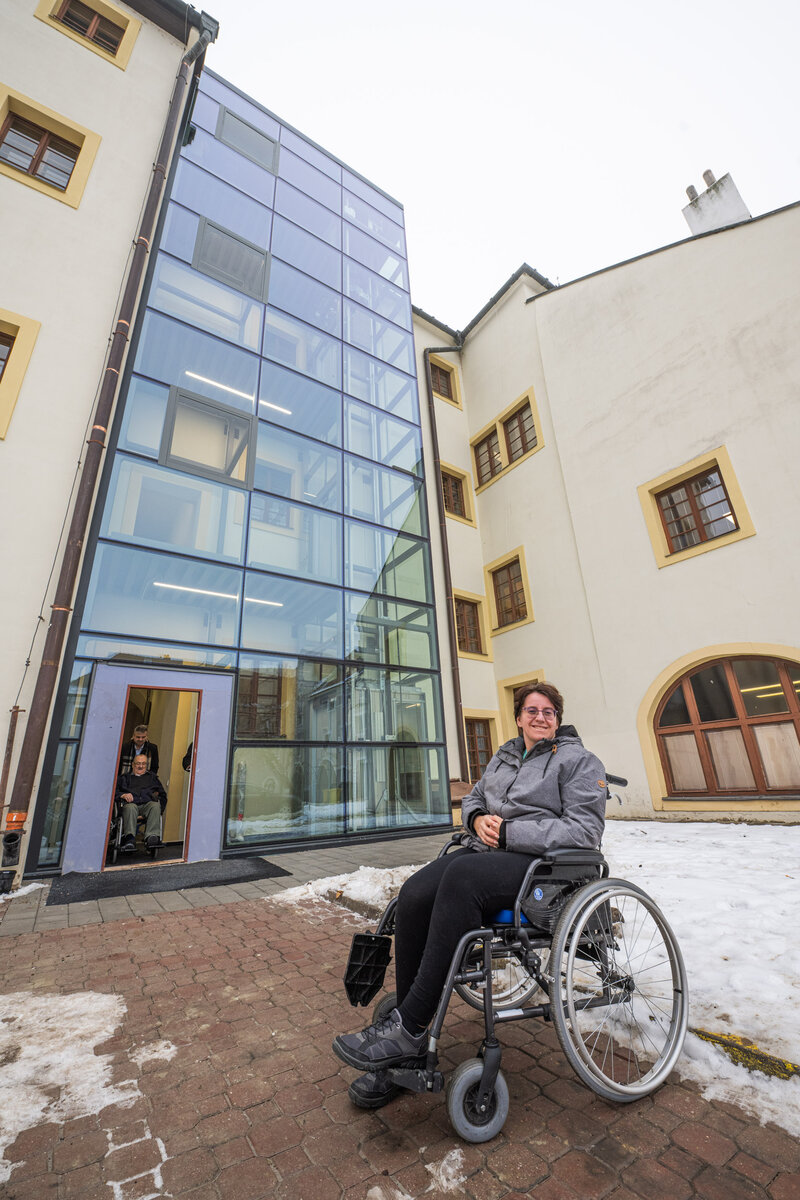 Podle starosty nebylo nalezení vhodného řešení jednoduché. „Opakovaně jsme projekt konzultovali s památkáři a podařilo se najít přijatelné řešení, které respektuje historický charakter budovy. Věřím, že výtah uvítají všichni, kteří mají s pohybem po schodech potíže,“ doplnil Tomáš Opatrný.