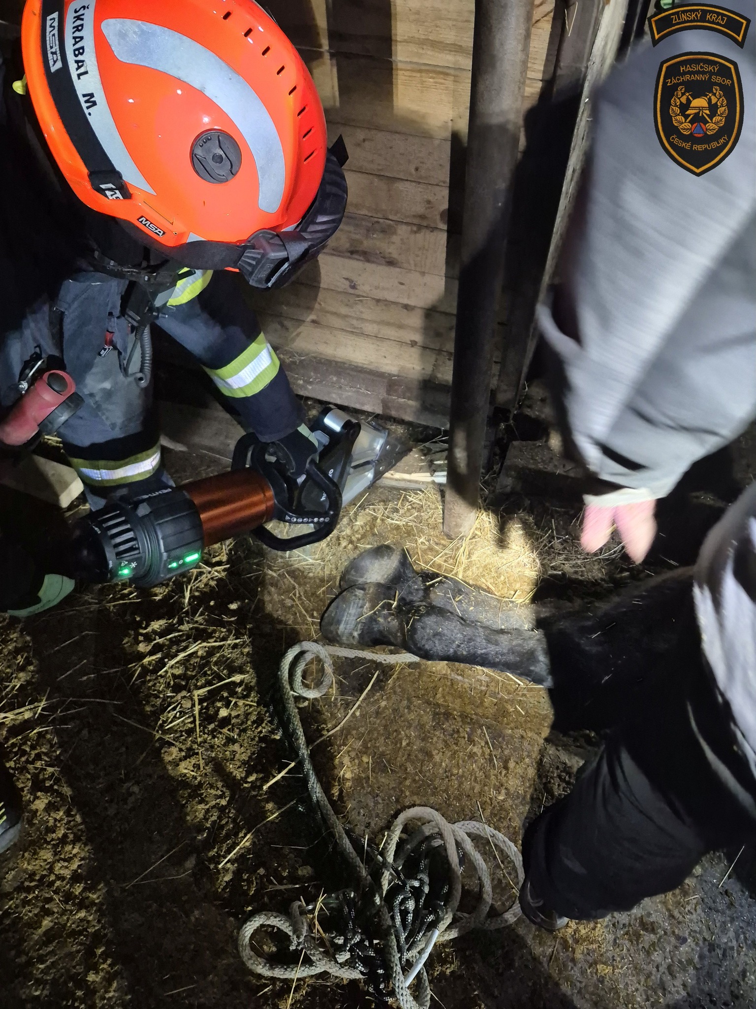 „Po příjezdu hasiči za použití aku vyprošťovacího zařízení, tzv. rozpínáku, zvětšili prostor, ve kterém byla noha uvězněna. Společnými silami se jim podařilo koně bezpečně vyprostit,“ přiblížil zásah Martinec.