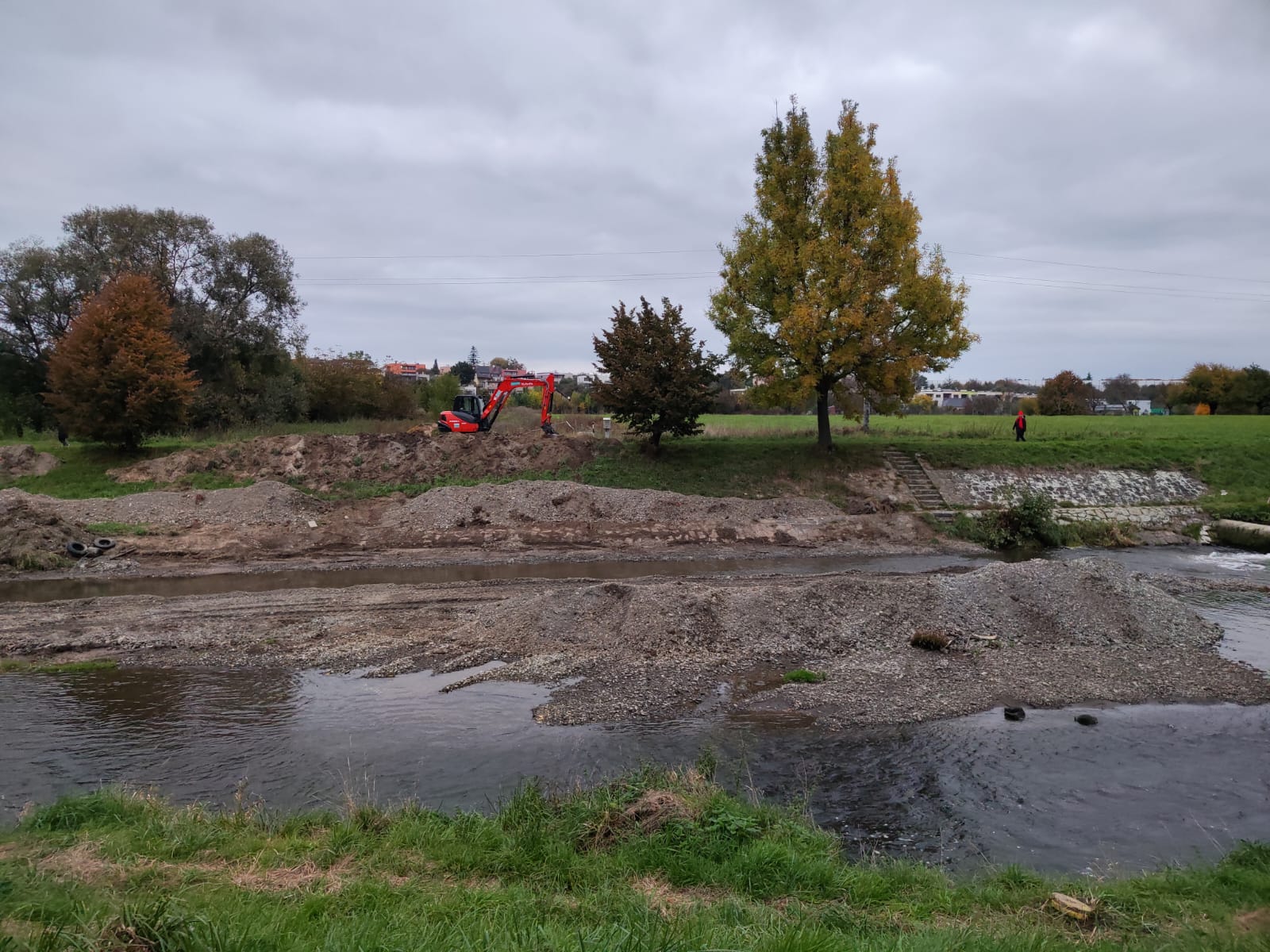 OtrokovicePovodí Moravy aktuálně realizuje údržbové práce v korytě řeky Dřevnice v místě malého splavu na sídlišti Trávníky. Práce spočívají v odstranění povodňových škod ze září 2024, kdy byly po přívalových deštích poškozeny části koryta i samotný splav.