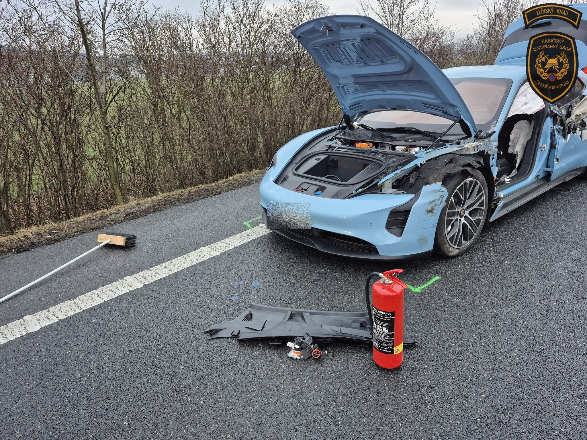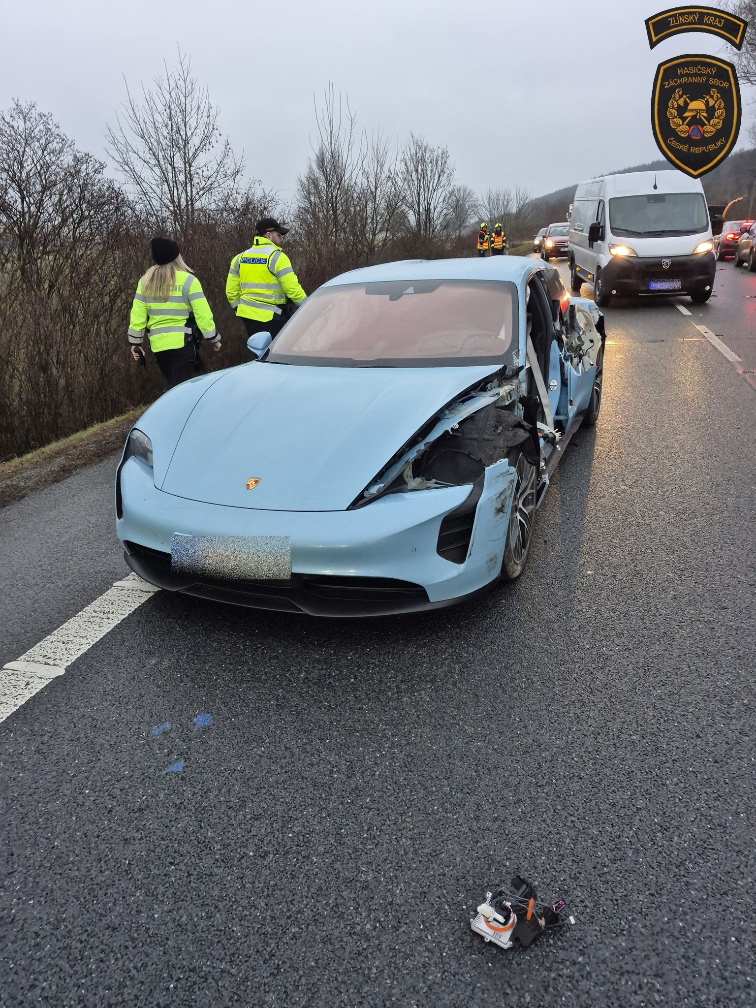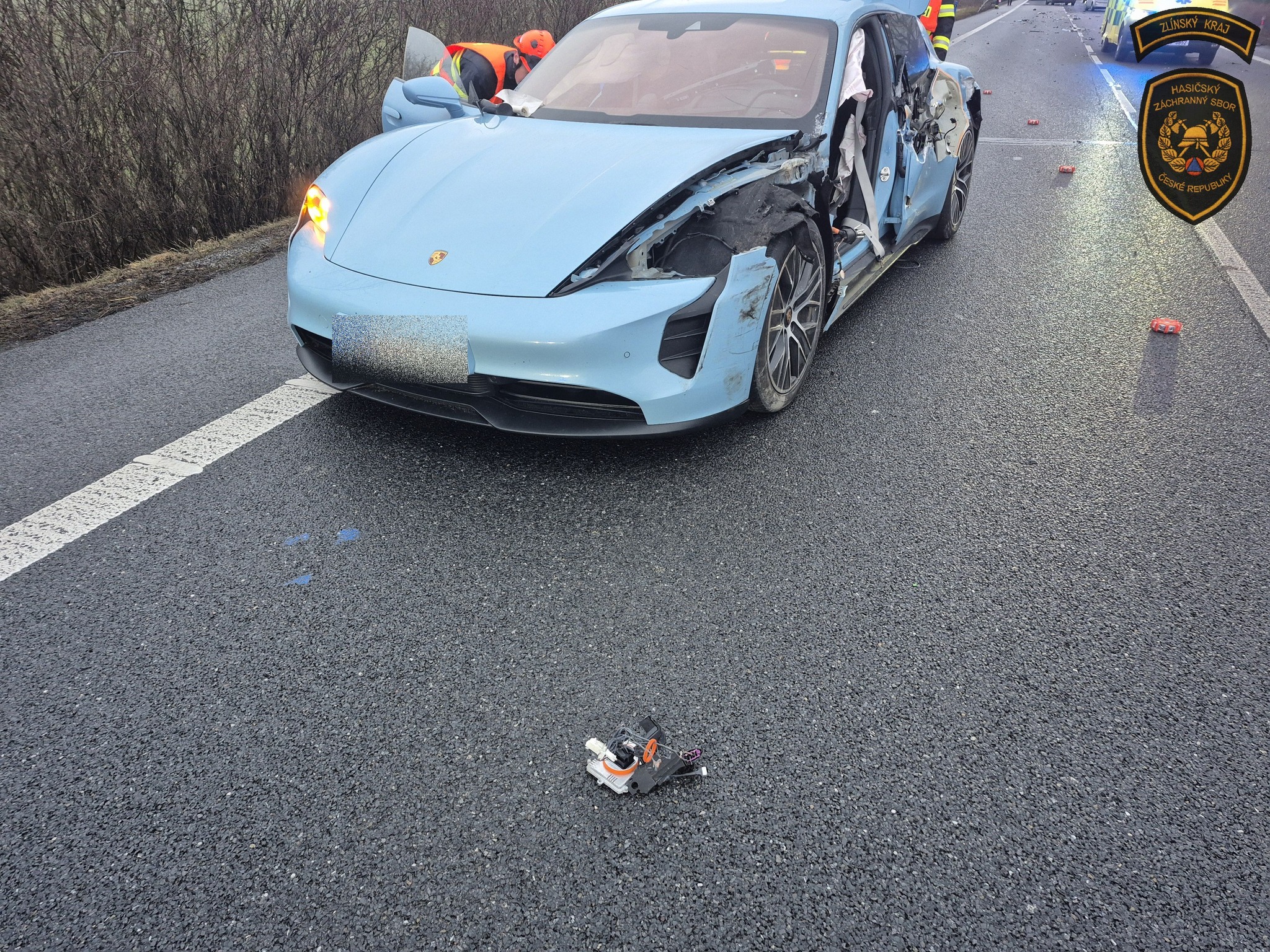 Jedním z havarovaných vozidel byl elektromobil značky Porsche.