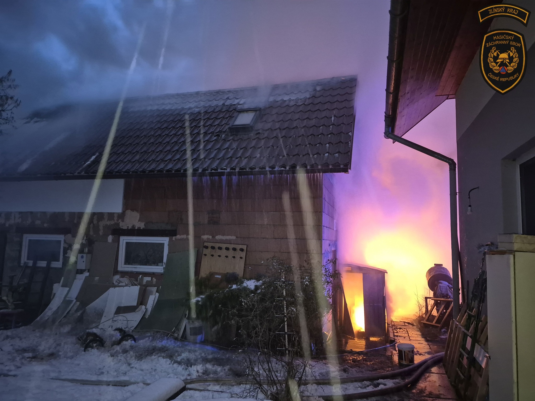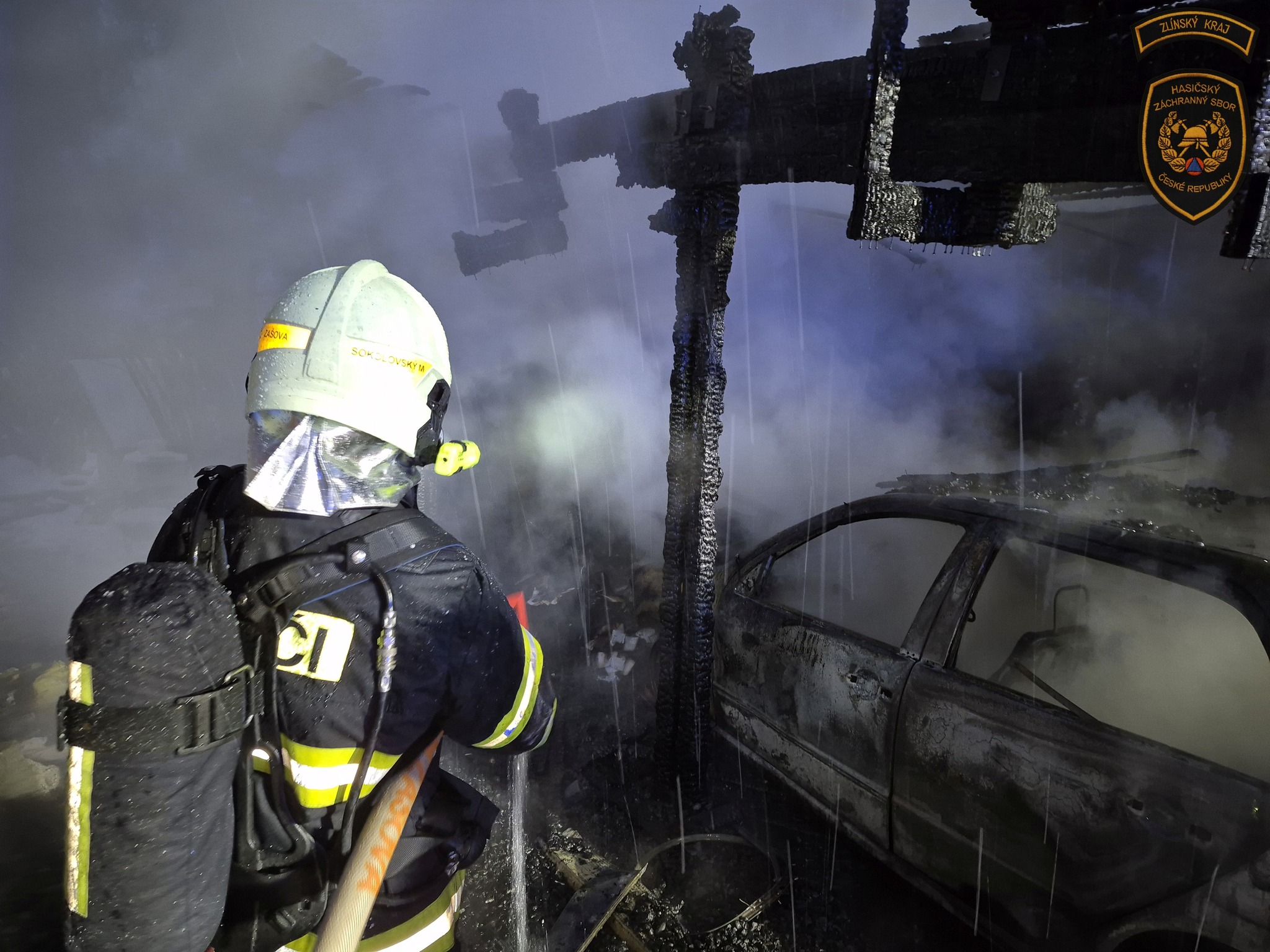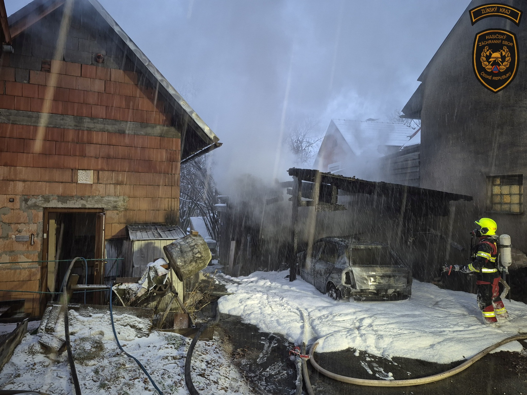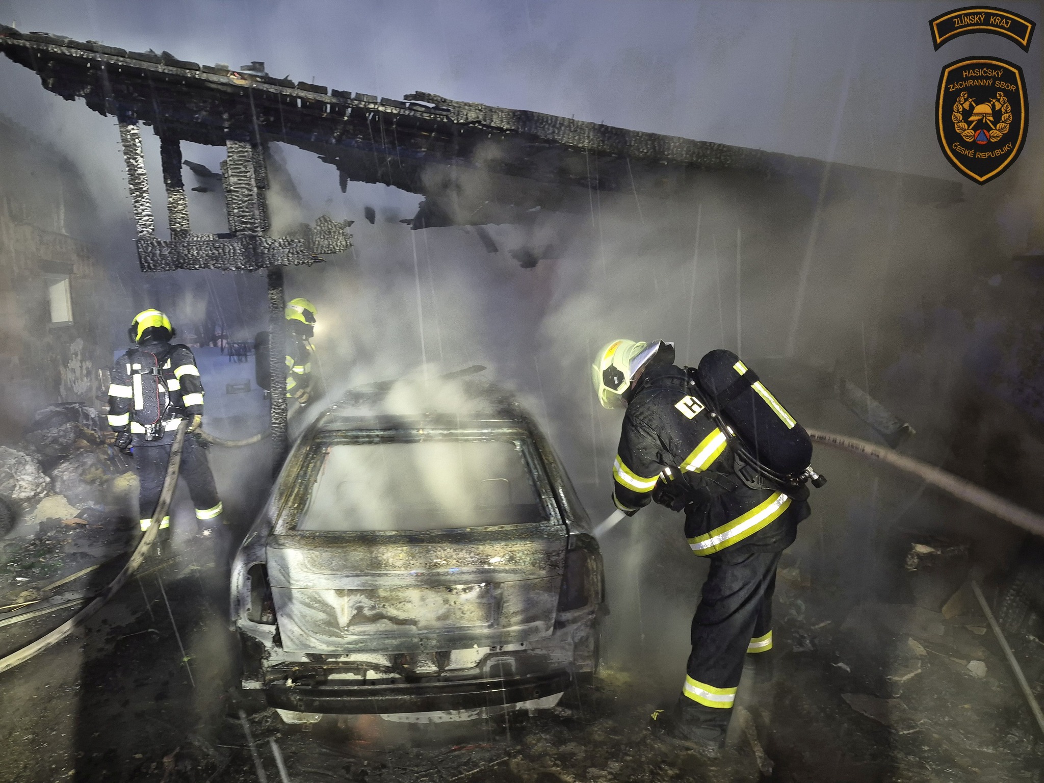 Ranní požár v Zašové napáchal škodu za více než milion korun. Zničena je kůlna s přístřeškem i zaparkované auto