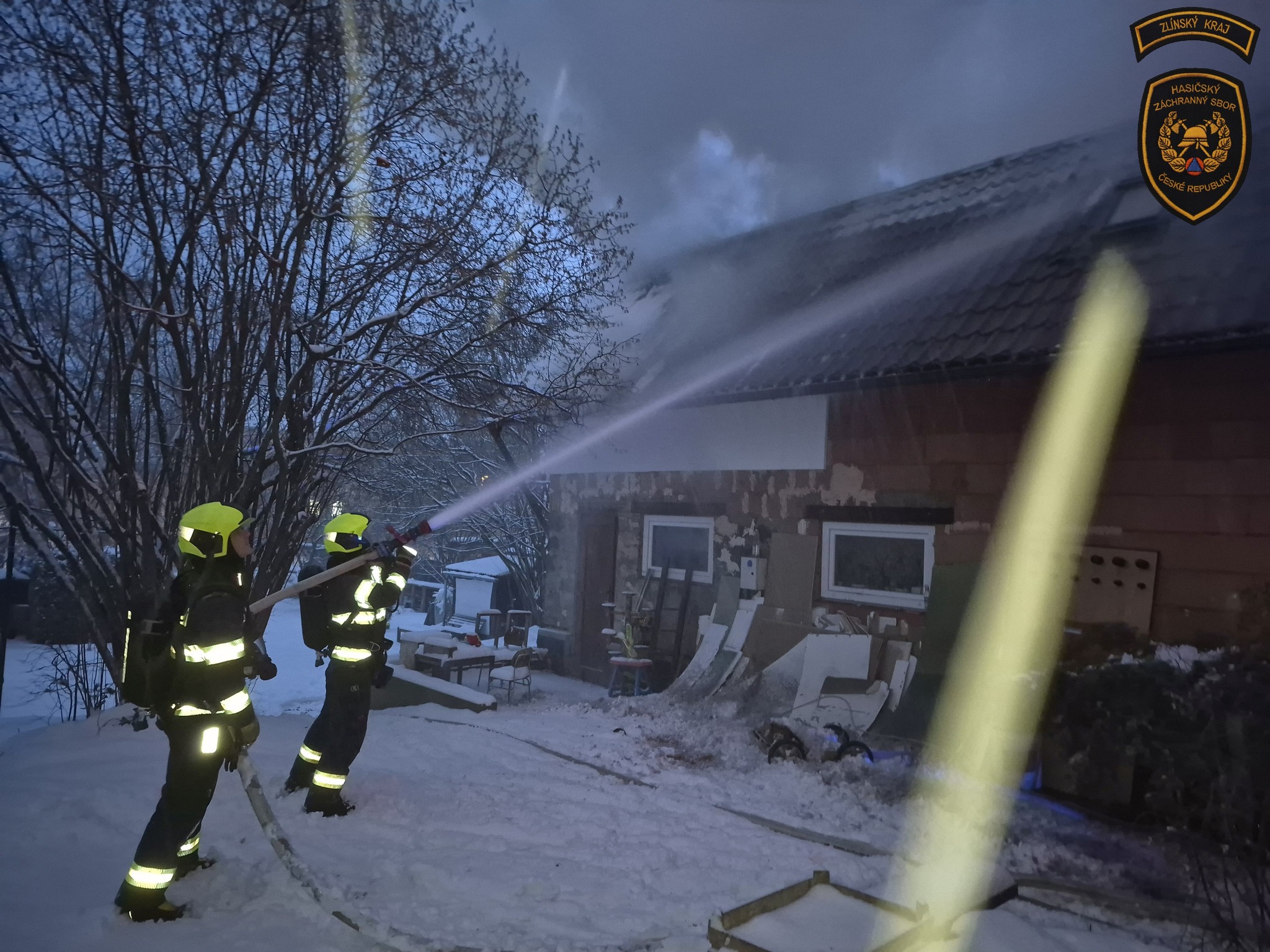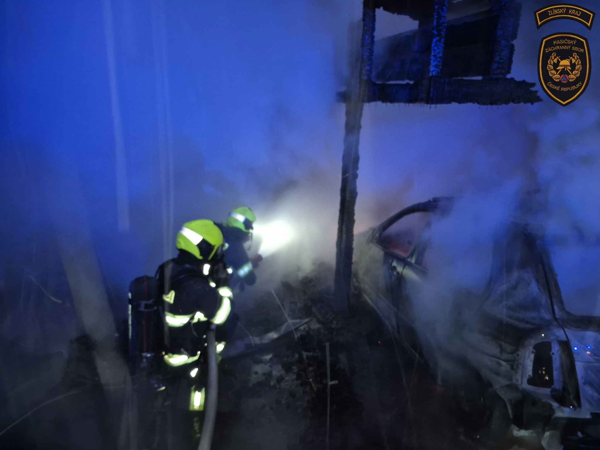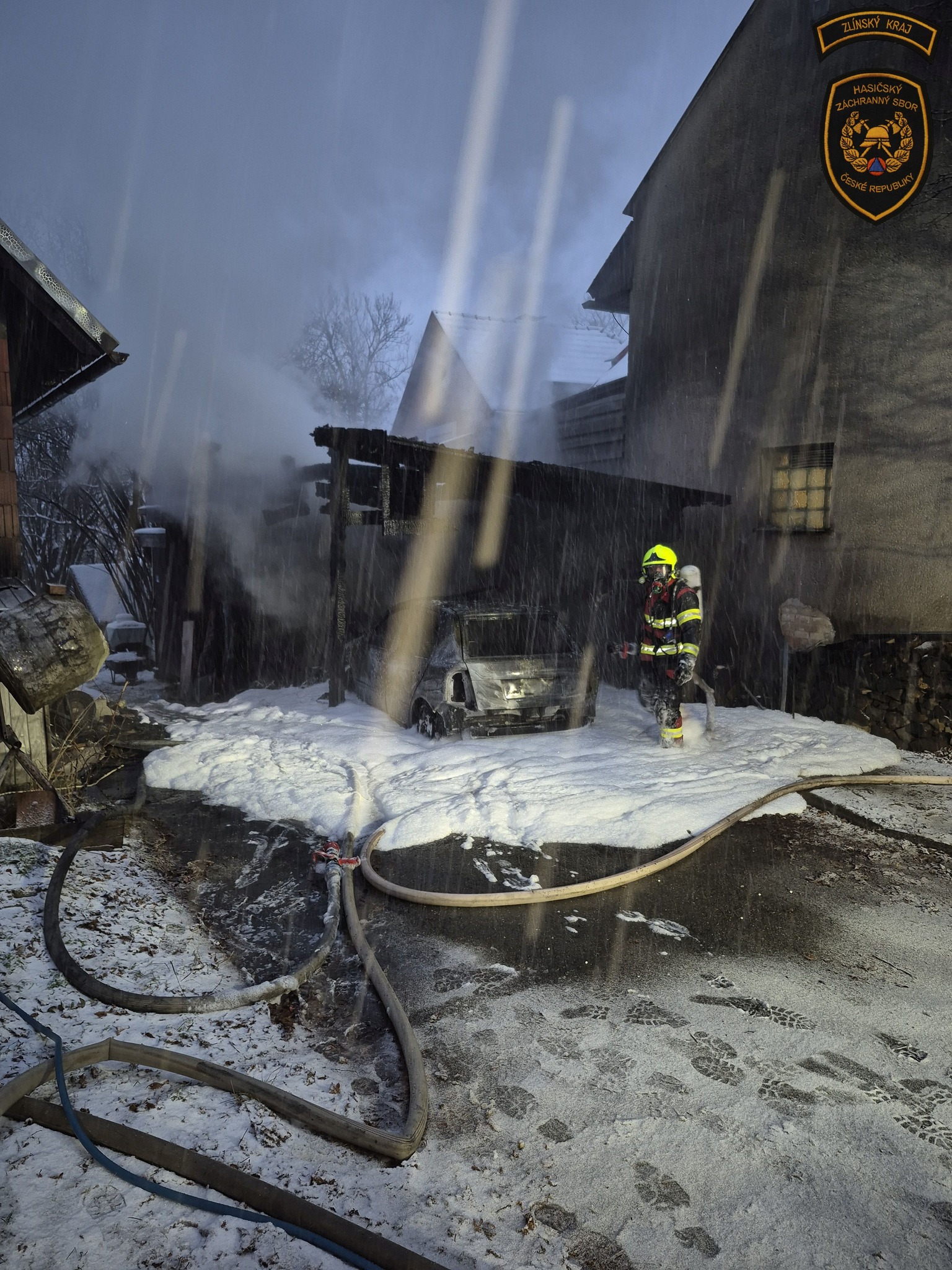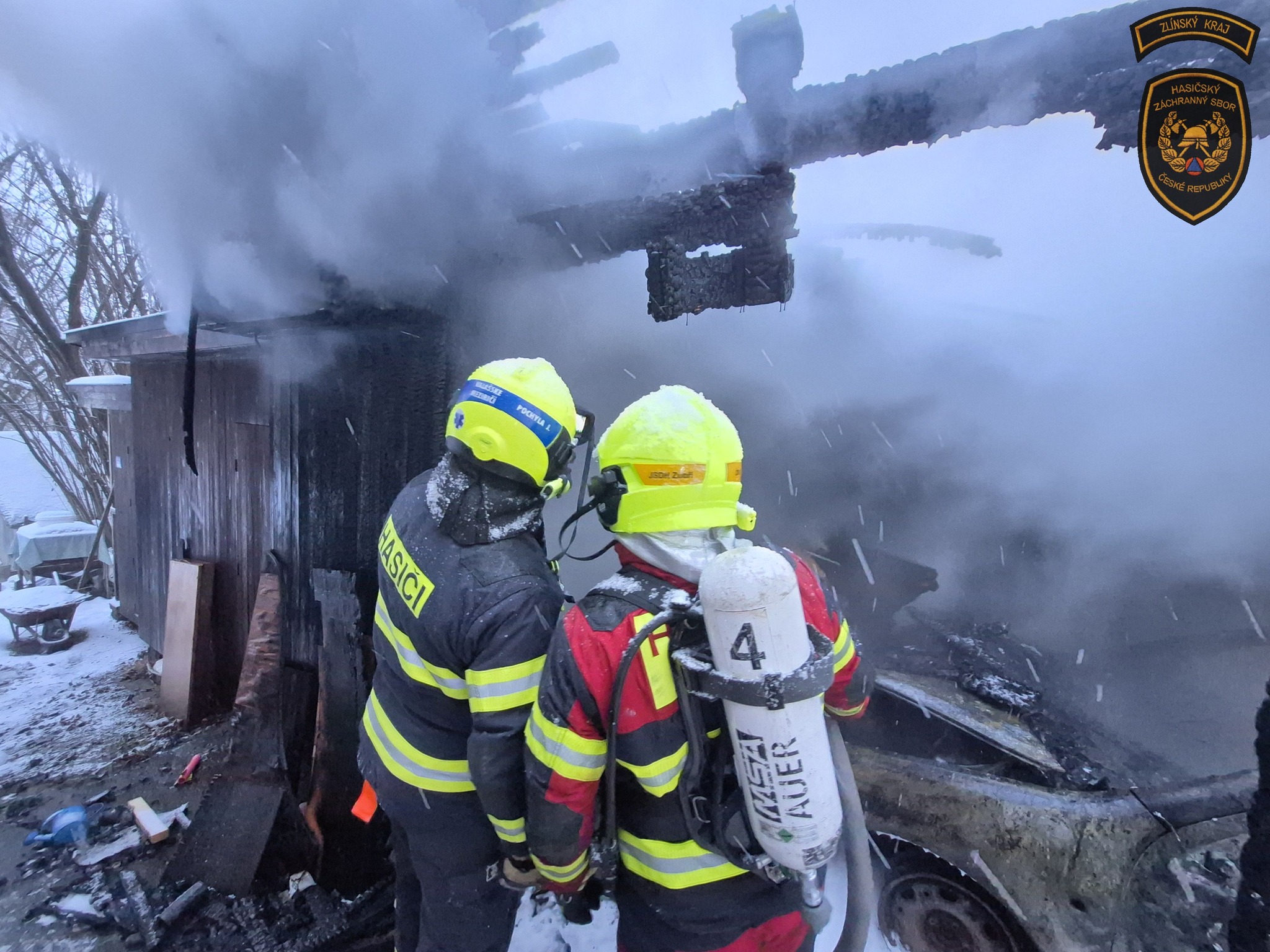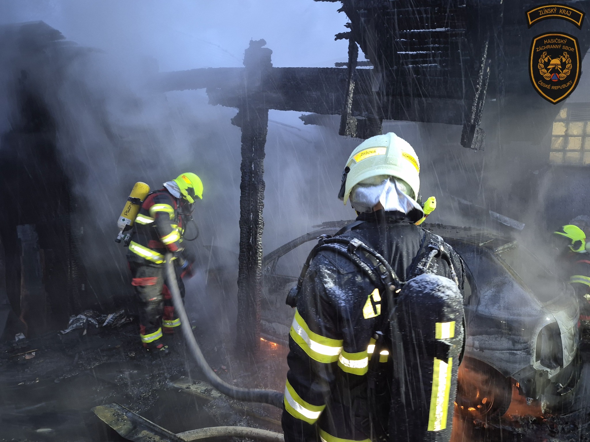 Ranní požár v Zašové napáchal škodu za více než milion korun. Zničena je kůlna s přístřeškem i zaparkované auto