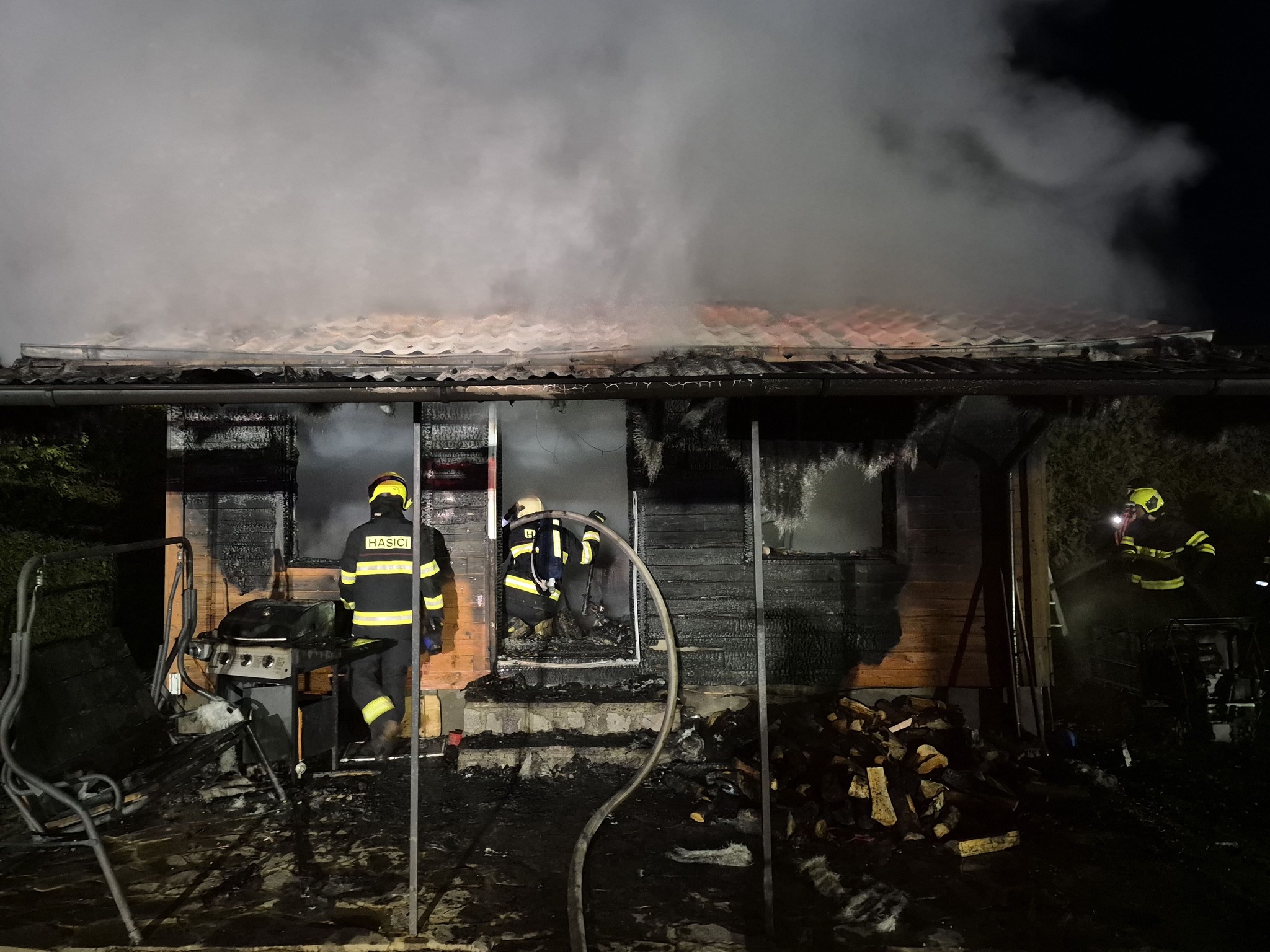 Noční požár zničil zahradní domek ve Zlechově