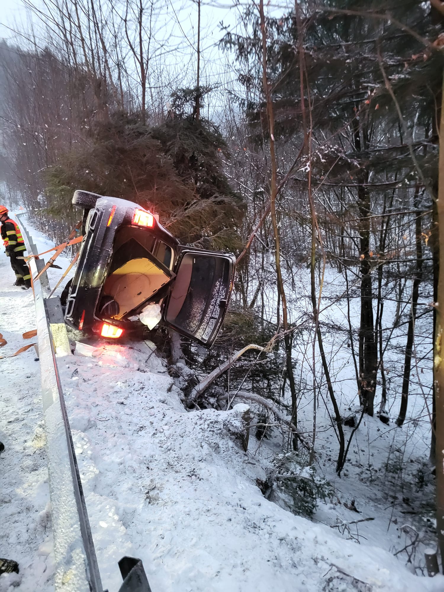 Převrácené vozidlo v Hutisku-Solanci