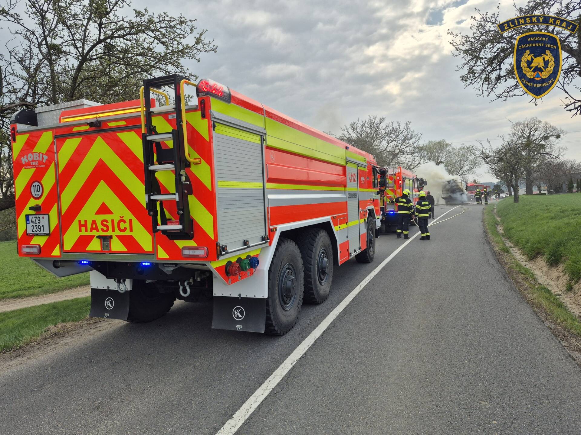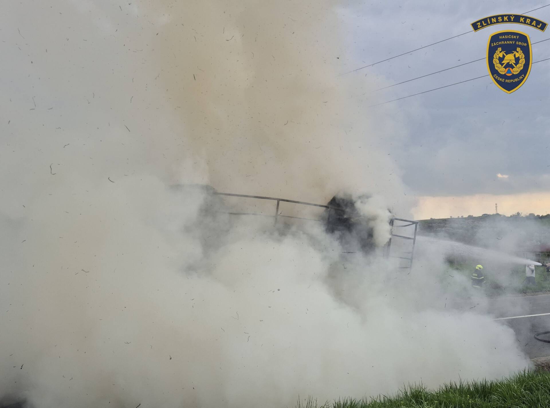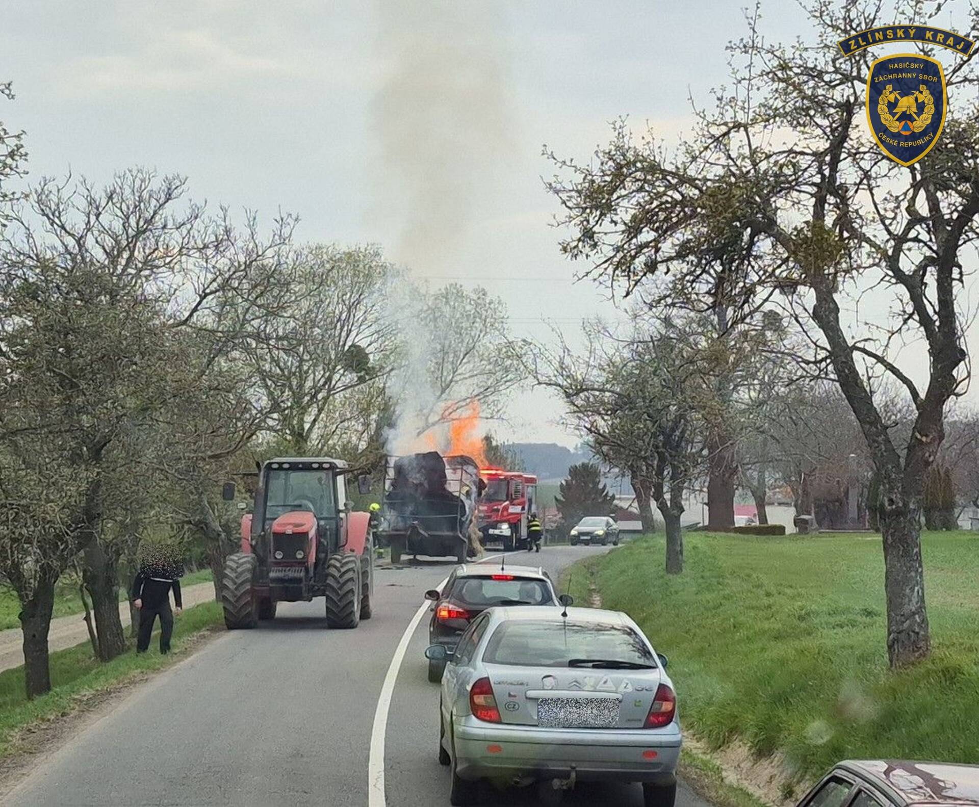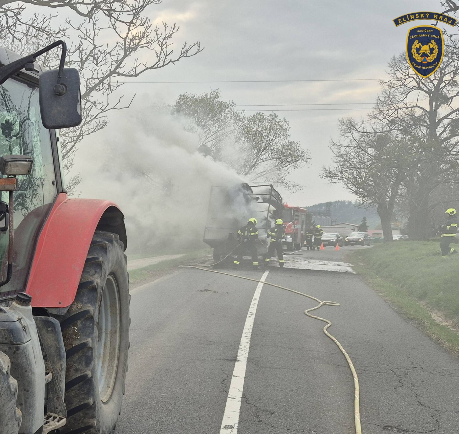 „Řidič při zpozorování požáru soupravu odpojil a odjel traktorem do bezpečné vzdálenosti,“ přiblížil mluvčí Hasičského záchranného sboru Zlínského kraje David Martinec.